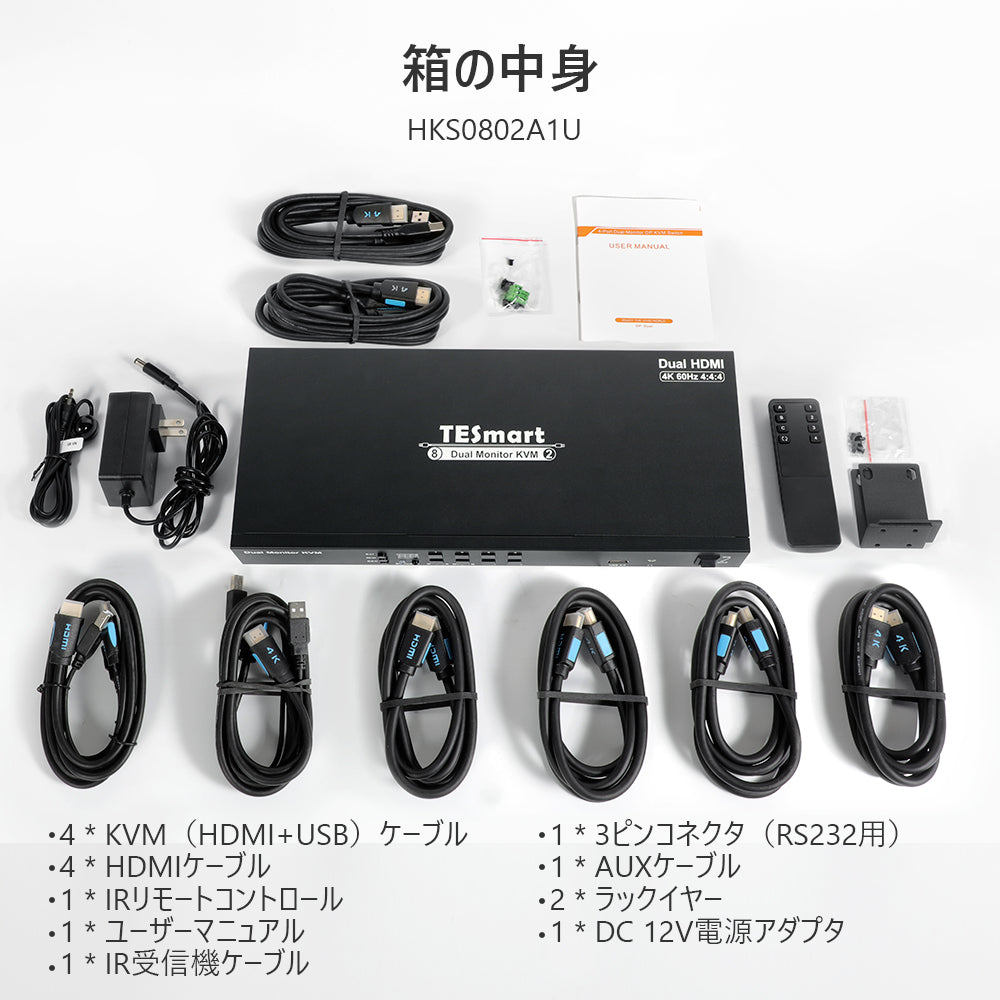 - 1 * 4x2デュアルモニターHDMI KVMスイッチ