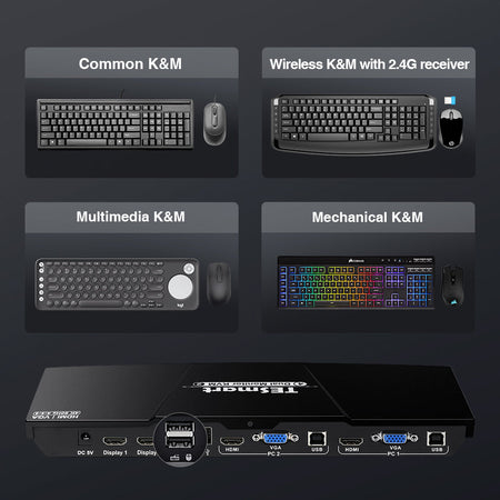 - 幅広いキーボードの互換性のためのK&Mパススルー:有線、ワイヤレス、メカニカル、ゲーミングキーボード。