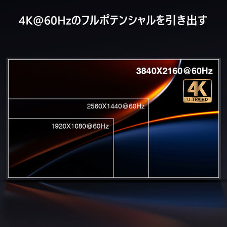- VGAポートで1080P@60Hzを簡単に処理し、HDMIポートで3840*2160@60Hz(3440x1440@100Hz、2560x1440@144Hzなど)を処理できます。HDMI 2.0およびHDCP 2.2に対応しています。