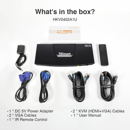 - 1 * 2x2 HDMI+VGA デュアルモニターKVMスイッチ