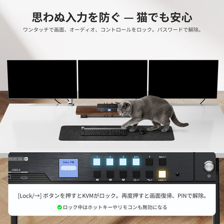DKS403-M24は、最大4台のPCを3台の高解像度ディスプレイでシームレスに制御する必要があるプロフェッショナルやパワーユーザーのために設計されています。驚くべき8K@60Hzのビジュアルと鮮やかで真実味のある色彩をサポートするこのトリプルモニターKVMスイッチは、性能と柔軟性の両方を求める動画編集者、開発者、マルチタスクをこなす人、IT管理者に最適です。