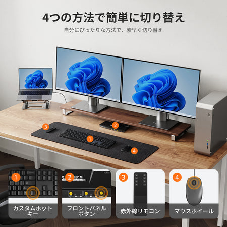 ホットプラグ & 4種類の切り替え方法 – ホットプラグサポートによる簡単な切り替え。