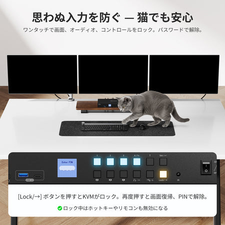 トリプルモニターMST KVMドッキングステーションキット - 4K60Hz、EDID、ノートPC 1台およびPC 3台用