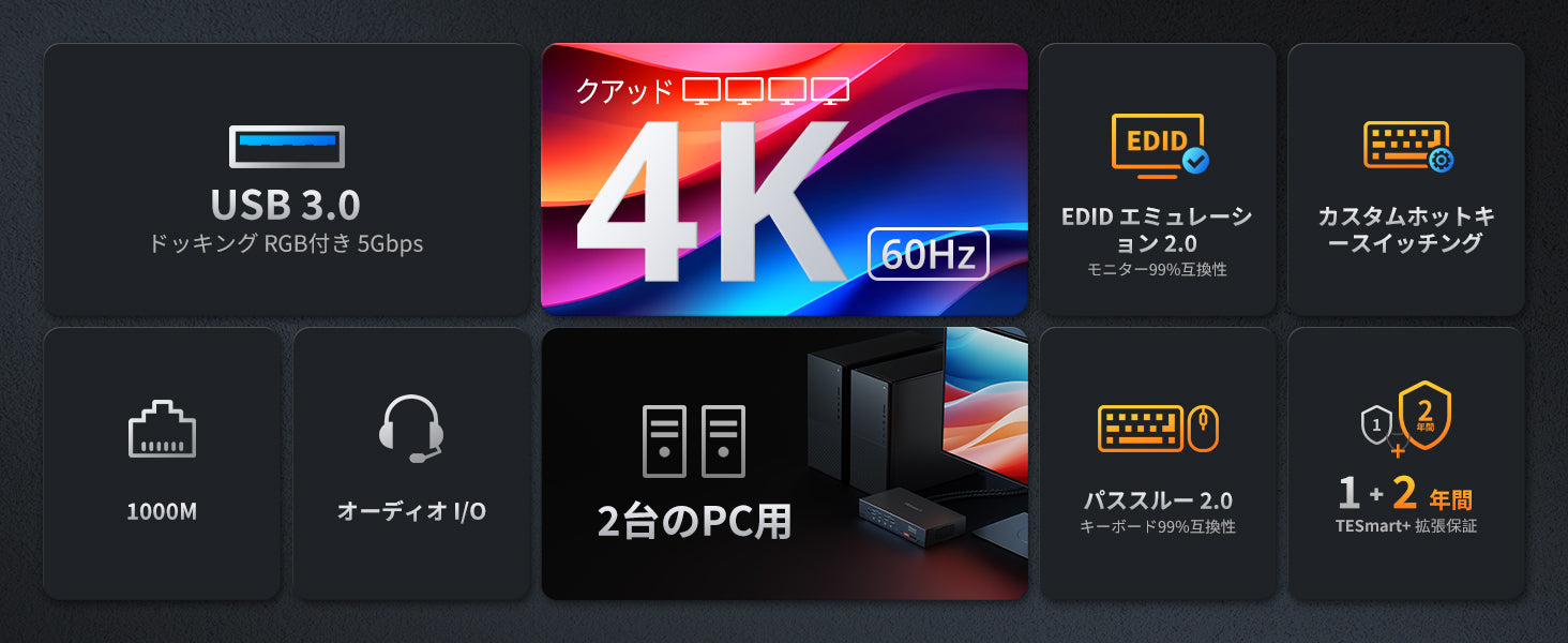 2台のPCで4台のモニターを制御。これがTESmartがマルチタスクを再定義する方法です。