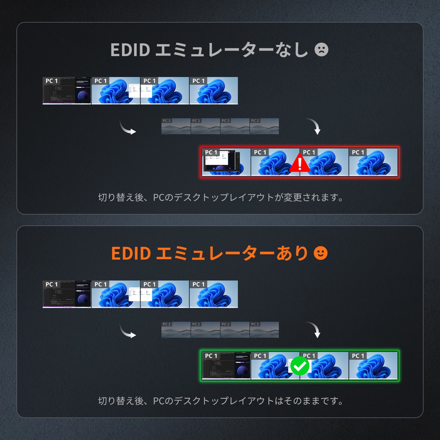 HDMI 2.0 + DP 1.2による真のQuad 4K60Hz、99%のモニター互換性を実現するEDIDエミュレーター、ちらつきやブラックスクリーンなし。