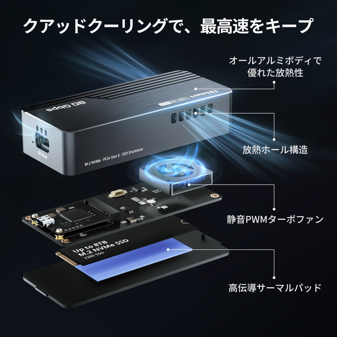 80Gbps M.2 NVMe SSDエンクロージャー、インテルJHL9480チップ搭載&冷却ファン内蔵